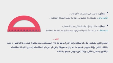 ?الكلام الذي يشتمل على الاستثناء إ َّما (تام )? ،?وهو ما كان المستثنى منه مذكو ًرا فيه? ،?وإمَّا (ناقص )? ،?وهو?